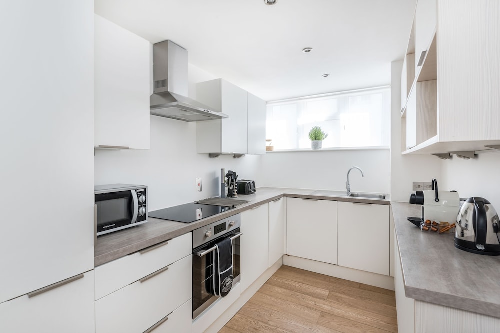 This apartment complex welcomes guests in London.