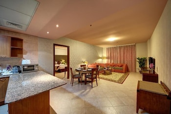 Enjoy a meal at Al Manar Restaurant, or stay in and take advantage of the aparthotel's room service (during limited hours). Continental breakfasts are available daily from 7 AM to 10:30 AM for a fee.