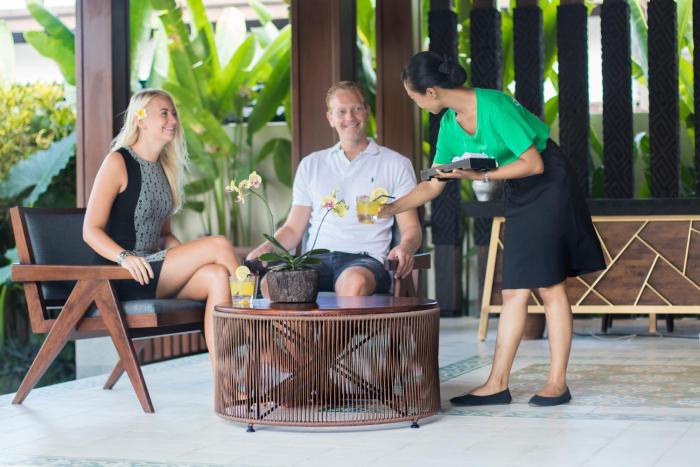 This hotel warmly welcomes guests in Sanur.