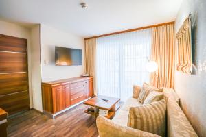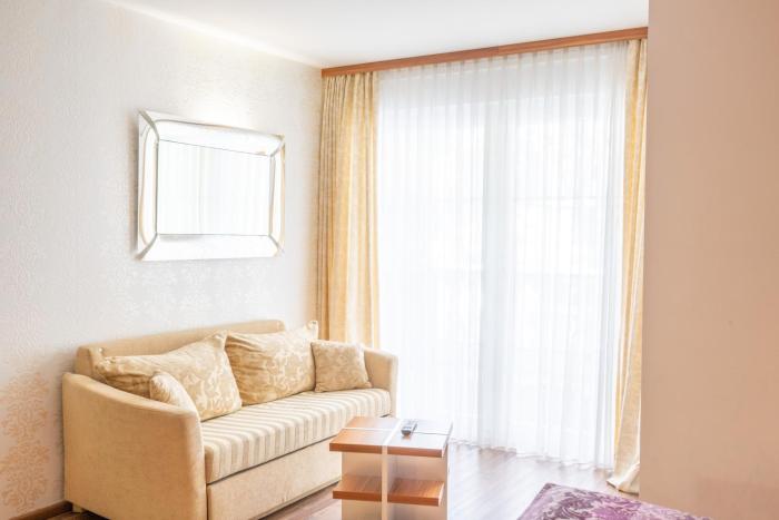 Air conditioning and central heating ensure that rooms maintain comfortable temperatures. Some rooms have a balcony, which gives guests additional space for rest and relaxation. The rooms have a double bed and a sofa bed. Children's beds can be requested for younger guests. Valuables can be securely stored in a safe. The kitchenette comes with a refrigerator, a microwave and a tea/coffee station. A telephone, a TV and WiFi provide all the essentials for a comfortable vacation. Cleaning on departure is among the services offered. A hairdryer and bathrobes are available in the bathrooms, which are equipped with a shower.