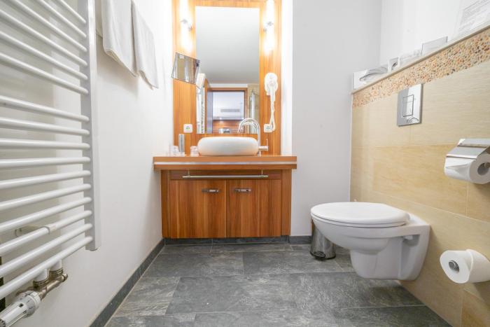 The hotel has 64 rooms and includes an elevator and a reception desk. The hotel offers a conference room. Wireless internet access is provided in public areas. Children can enjoy the playground. Parking facilities available to guests include a garage and a parking lot.