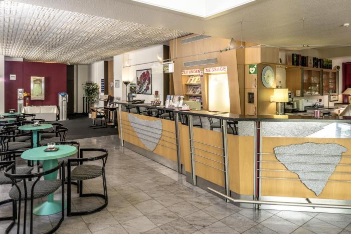 Booked this hotel because it's only a 5 minute walk to the 'Messe'. The only food available in the evening is a selection of pizzas. The bar is reasonably priced. Breakfast buffet is very good - a...