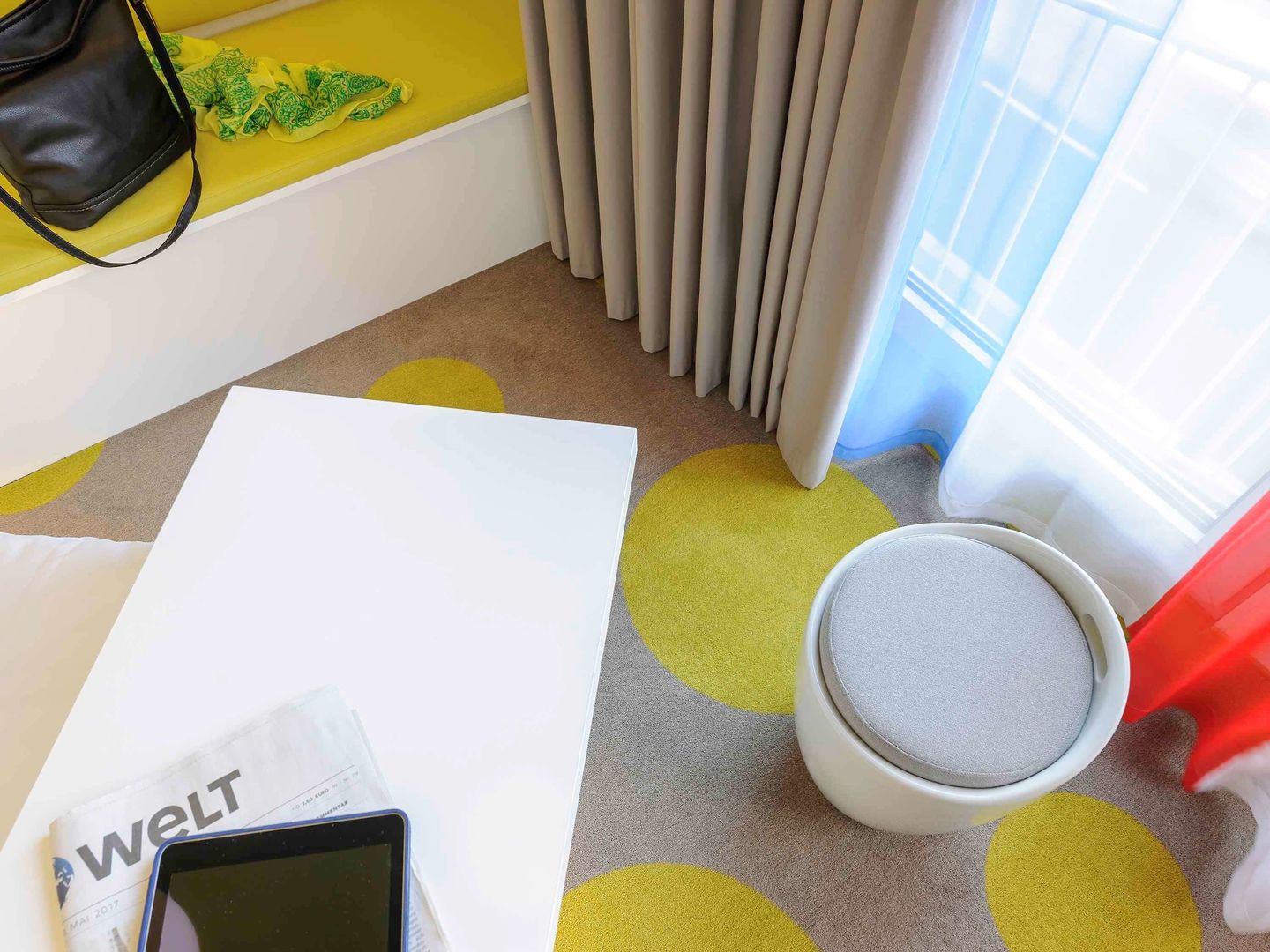 As all Ibis Styles this one is also colorful. The receptionists are very polite and helpful since the first moment. We had our car parked at the hotel garage that is in the subsolo, it is a small one...