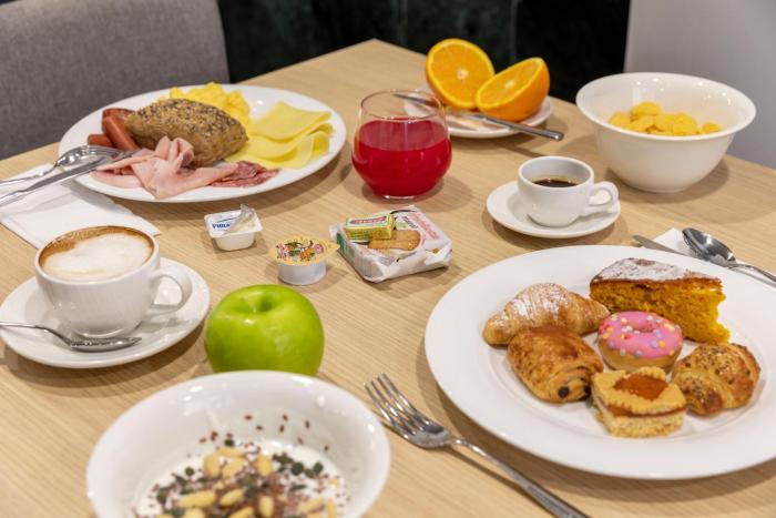 The hotel has 97 rooms and includes an elevator and a reception desk. To ensure guests a comfortable and relaxing stay, the hotel provides various services and facilities, including a safe, a playroom, room service and a conference room. Wireless internet access is provided in public areas. The grounds of the hotel feature a playground and a lovely garden. Guests arriving by car can park their vehicles in the parking lot. A bicycle rental service gives guests the opportunity to explore the surrounding area independently.