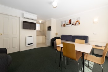 This visit we booked into a studio room. The owners are in the process of upgrading and the studios have been done. Clean, comfortable (the new bed was very comfortable) & the room spacious...