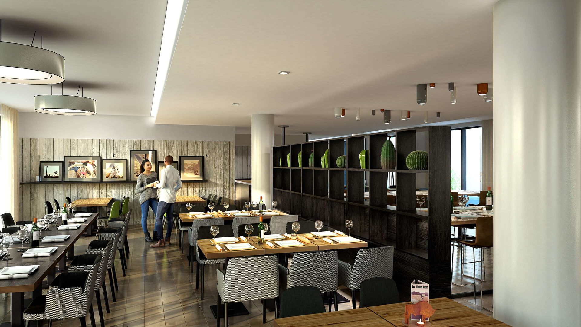 The dining area includes a restaurant and a bar.