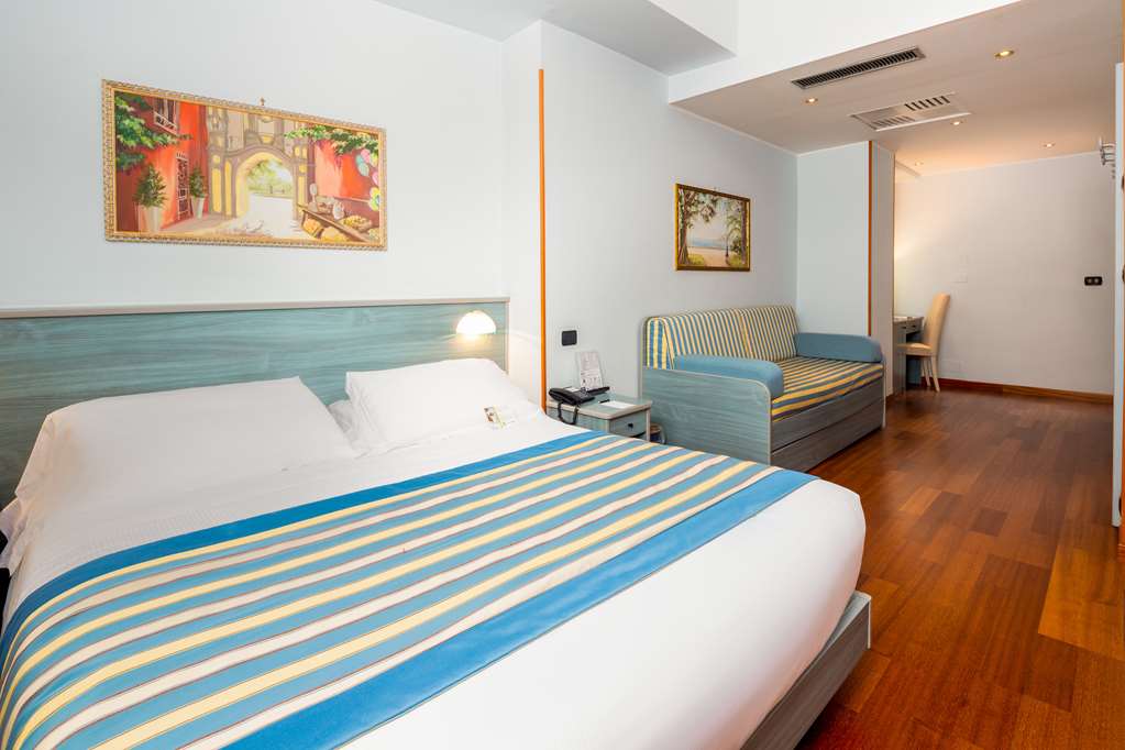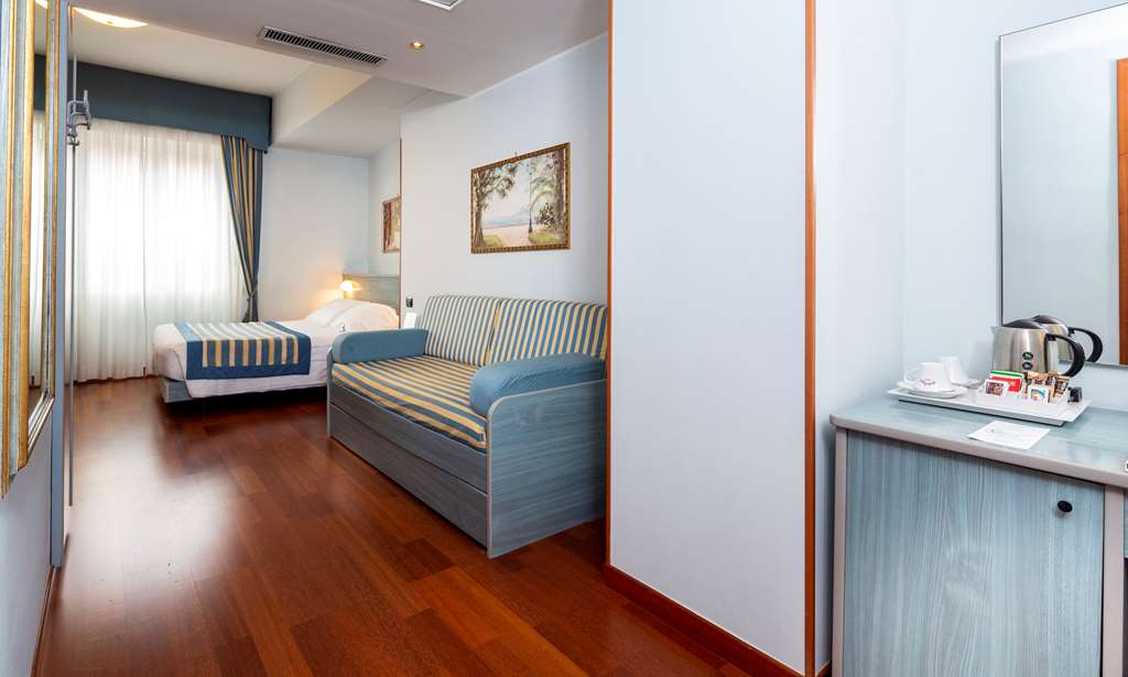 Rooms feature a kitchen and a bathroom, and air conditioning ensures just the right temperature. Guests can enjoy the sea view from a balcony or terrace. The rooms have a double bed and a sofa bed. Children's beds can be requested for younger guests. There is also a safe and, for a fee, a minibar. A mini fridge and a tea/coffee station are standard features. A telephone, a flatscreen television with satellite channels, a DVD player and WiFi (no extra charge) provide all the essentials for a comfortable vacation. Slippers are included. A hairdryer and bathrobes are available in the bathrooms, which are equipped with a shower. The hotel has family rooms and non-smoking rooms.
