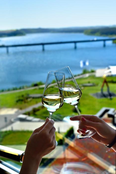 This is an attractive and modern hotel in a nice location on the water. The positive aspects are : spa, beer garden (would help if the hotel put up some signage pointing to it) an outdoor theatre...