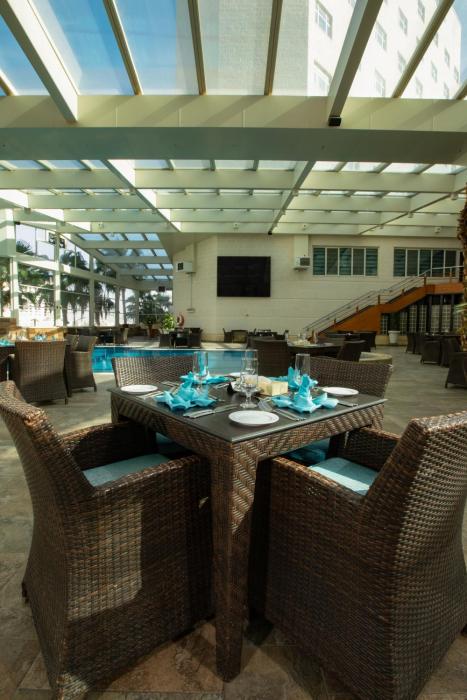 Dining facilities include a breakfast room, a café and a bar. Guests can indulge their palates at the non-smoking restaurant, which features air conditioning and a separate area for smokers. Catering options include bed and breakfast, half board, full board and all-inclusive. A continental breakfast buffet guarantees a great start to the day. For lunch and dinner, guests can order à la carte. Diet meals, vegetarian dishes and children's meals can be prepared on request. In addition, special catering options and snacks are available. The show cooking is a particularly special attraction. The hotel offers a selection of alcoholic and non-alcoholic beverages.