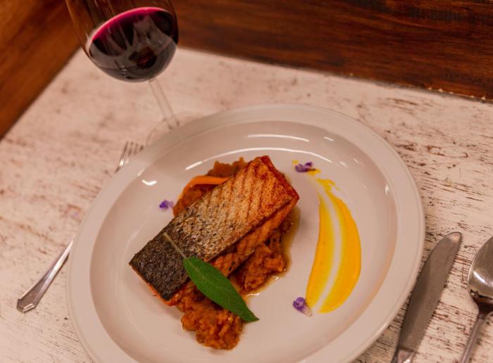 Various dining options are available, including a dining room and a bar. A bed and breakfast package is offered as a catering option.