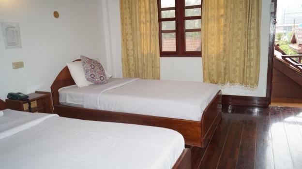 A little away from the backpacker area which is about 1 KM away. Thus cheaper and quieter and better value. Room cost 120,000kip/$15 after bargaining. Nice room and large comfortable bed but could do...