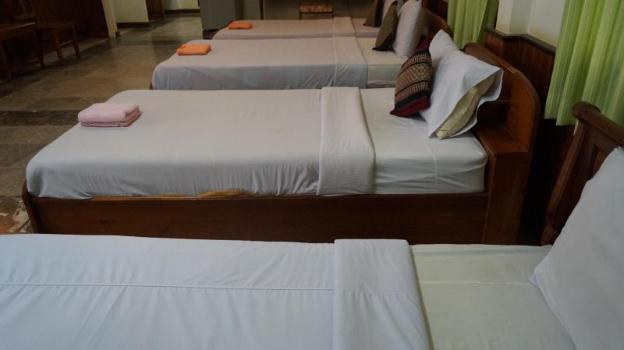 We stayed in 5 euro rooms in Laos that were better than this. The outside is beautiful, but the inside is another story. Everything needs to be repaired or repainted. The bathroom smelled of mold...