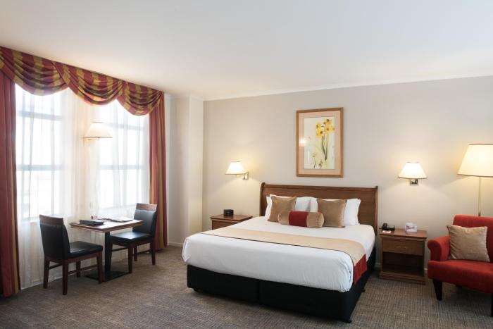 The hotel is located in a convenient setting to the Adelaide CBD and the room was very comfortable and nicely appointed. I ordered a room service dinner that was delivered promptly and was delicious...