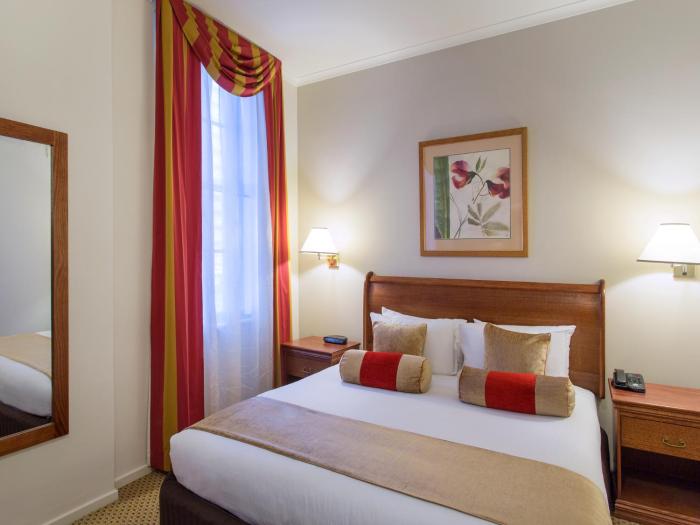 60 rooms, including 15 suites and 41 double rooms, are located on 6 stories and can be reached by 2 elevators. Check-in and check-out are possible at any time at the 24-hour reception desk. The hotel provides a safe, a currency exchange service and a conference room. Wireless internet access (for a fee) is provided in public areas. The hotel has wheelchair-accessible facilities.