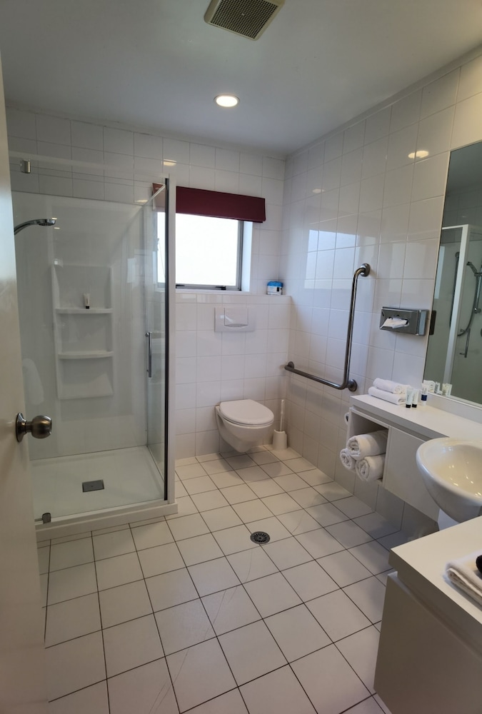 Very near small town shops and supermarkets, stay is very comfortable. It has full kitchen amenities, there's a dryer and washer room so you can do your laundry. We got the accessible room, it's so...