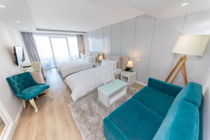 Rooms are equipped with air conditioning. Guests can enjoy the sea view from a balcony or terrace. A minibar is provided. A TV and WiFi provide all the essentials for a comfortable vacation. Bathrooms are equipped with a shower and include a hairdryer.