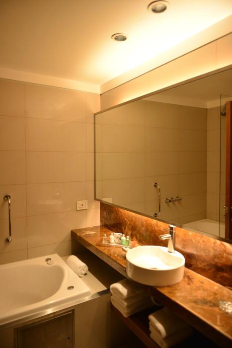 Air conditioning ensures that rooms maintain comfortable temperatures. Some rooms have a balcony, which gives guests additional space for rest and relaxation. Rooms have a double bed or a king-size bed. A safe, a minibar and a desk are also available. Equipped with a direct dial telephone, a television with satellite/cable channels, a stereo system and WiFi (no extra charge), the rooms provide many ways for guests to stay connected and entertained. The bathrooms have a shower, a bathtub and a whirlpool bath. For additional convenience, bathrooms also provide a hairdryer. The hotel has non-smoking rooms.
