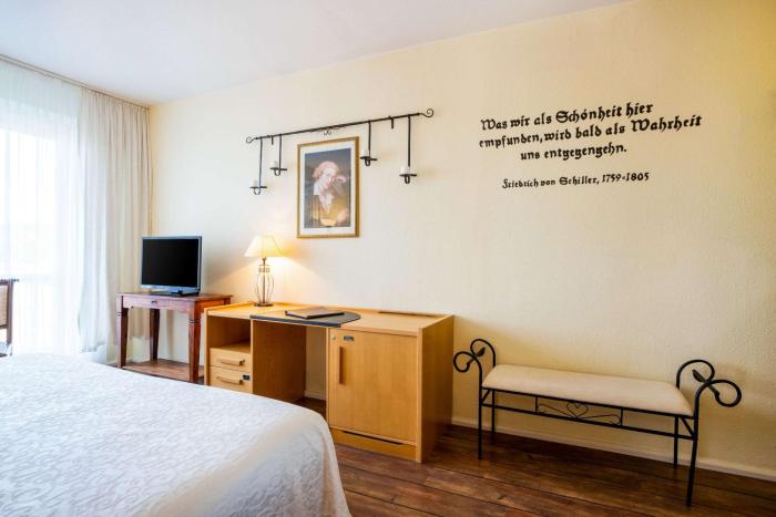 A very nice place to stay at a reasonable price. Many elderly Gemans here. The Hotels lays outside of Weimar, but there is public transport to the center. Rooms are spacious, well equipped, clean...
