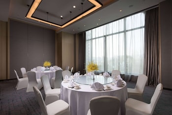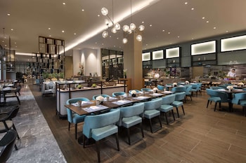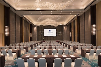Located in Qingdao (Huangdao), DoubleTree by Hilton Qingdao Oriental Movie Metropolis is within a 10-minute drive of Orient Golf Club and China Petroleum University. This 4-star hotel is 7.4 mi (11.9 km) from Jiashike Huangdao Shopping Center and 8 mi (12.8 km) from Shuangzhu Park.