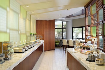 Nice remodeled rooms and especially the bathroom. The living room is roomy and includes a nice work station desk and small kitchen. Breakfast was complimentary and was good and had numerous hot items...