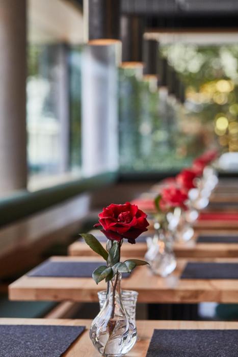 The dining area includes a bar. Guests can dine at the restaurant (non-smoking, a buffet, à la carte and high chairs). Half board can be booked. A generous breakfast buffet and dinner offer culinary delights every day. The menu also offers vegetarian dishes and vegan food. The hotel also offers special catering options.