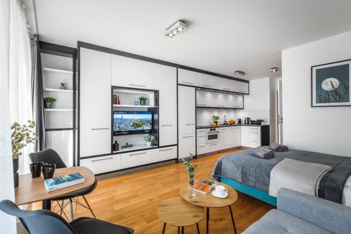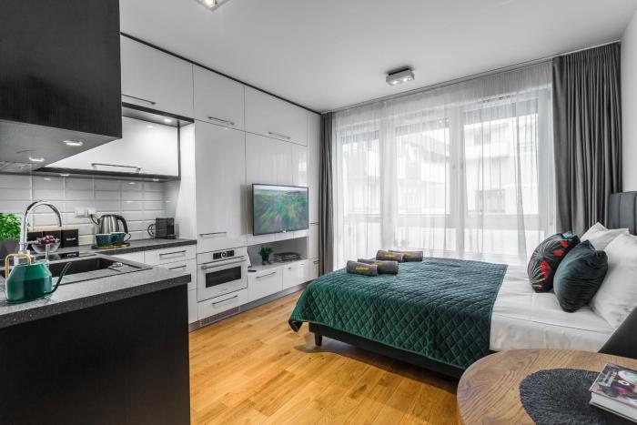 Some rooms have a balcony, which gives guests additional space for rest and relaxation. Rooms have a double bed or a sofa bed. Separate bedrooms can be reserved. Children's beds can be requested for younger guests. The kitchenette comes with a cooktop and a tea/coffee station. Equipped with a TV and WiFi, the rooms provide many ways for guests to stay connected and entertained.