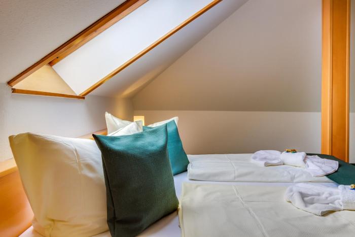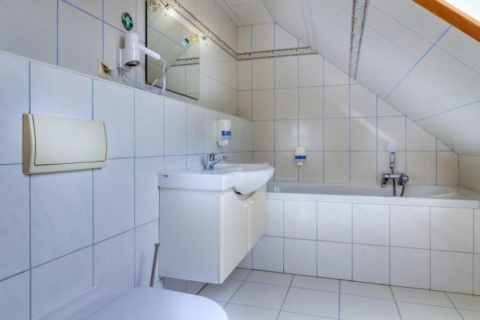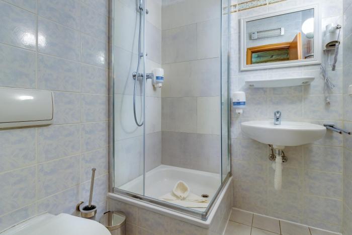 A double bed ensures a good night's sleep. Children's beds can be requested for younger guests. For a fee, there is also a minibar. A telephone and satellite television are provided as well. Amenities in the bathrooms include a shower.