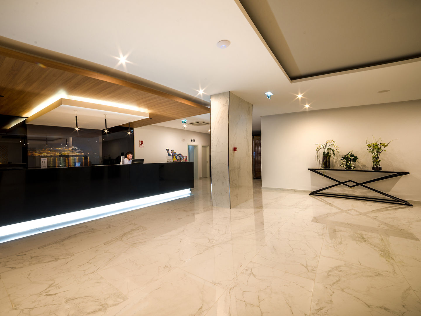 we arrived at the hotel around 10pm, 1st impressions were good, reception area spotless, man on desk very helpful, we had 2 rooms, 2 bedroom apt and 1 bedroom apt next to each other on 4th floor, our...