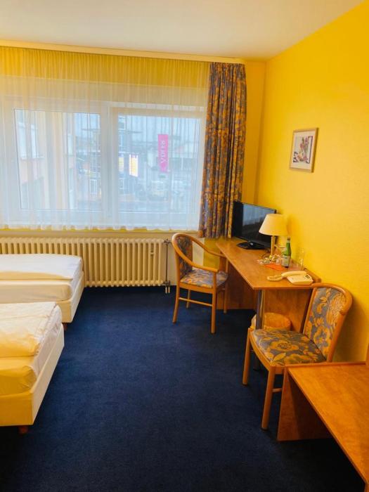 I stayed at the Park-hotel for 2 weeks while visiting Germany for business. The hotel is clean and the staff is very friendly. The room had a TV and desk. Bathroom was a little small, but similar...