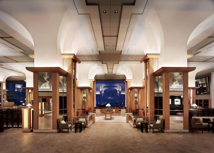 The hotel has 15 junior suites, 35 suites, 416 single rooms and 135 double rooms, which are located on 22 stories and are reachable by elevator. Check-in and check-out are possible at any time at the 24-hour reception desk. Amenities include a coat check, a safe and a currency exchange service. Wireless internet access allows guests to stay connected while on vacation. Wheelchair-accessible facilities are available. There are also a number of shops that make for great strolling and browsing. Guests arriving by car can park their vehicles in the garage or in the parking lot. Further services include medical assistance, translation services, room service, a laundry service and a hairdresser.
