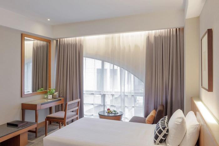 Stayed 3 nights at them is hotel at outskirt of Bangkok. It is right next to the purple line MRT station Bang Krasor and takes about 45 minutes to the Suvarnabhumi airport by car. For travelling on...