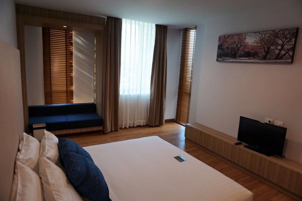 The Hotel sits opposite the Plaza Mall. Having said that, its a wee bit away from town but as its along the main road, transport should not be a problem. We stayed in the Corner Deluxe room...