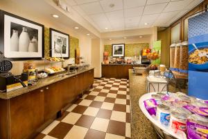 A complimentary hot/cold buffet breakfast is served daily from 6 AM to 10 AM.