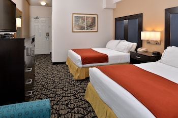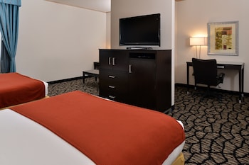 Make yourself at home in one of the 121 air-conditioned rooms featuring refrigerators and microwaves. Wired and wireless Internet access is complimentary, while 42-inch LCD televisions with cable programming provide entertainment. Conveniences include desks and complimentary newspapers, as well as phones with free local calls.