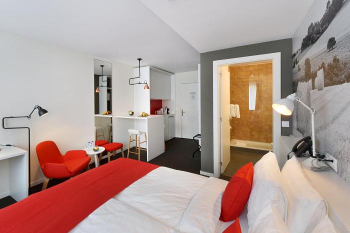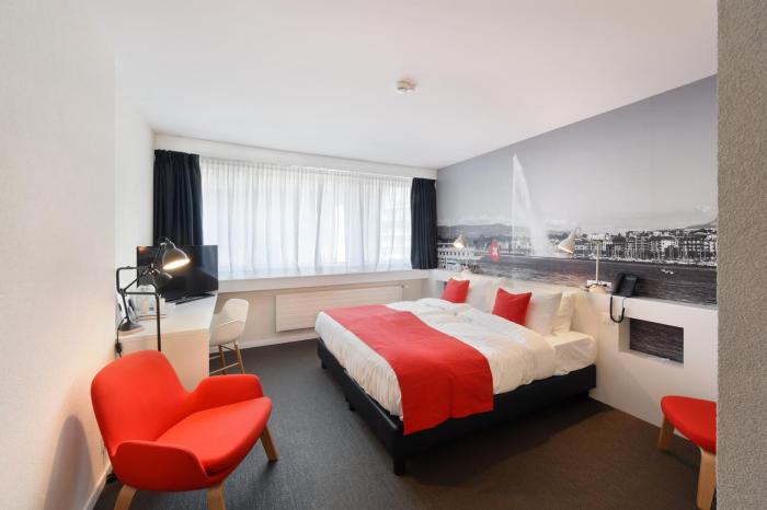 With a stay at Home Swiss Hotel in Geneva (Plainpalais), you'll be within a 15-minute drive of Saint-Pierre Cathedral and Jet d'Eau Fountain. This 4-star hotel is 2.7 mi (4.3 km) from United Nations European Headquarters and 4.7 mi (7.6 km) from Palexpo.