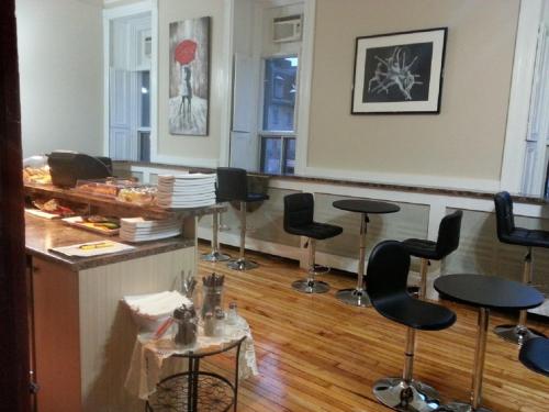 The room was big with a street view of St Catherine.(This is the most happening road of downtown Montreal).Breakfast was not so great but not bad also.(bread,yogurt,fruits,milk,con flex,orange juice...
