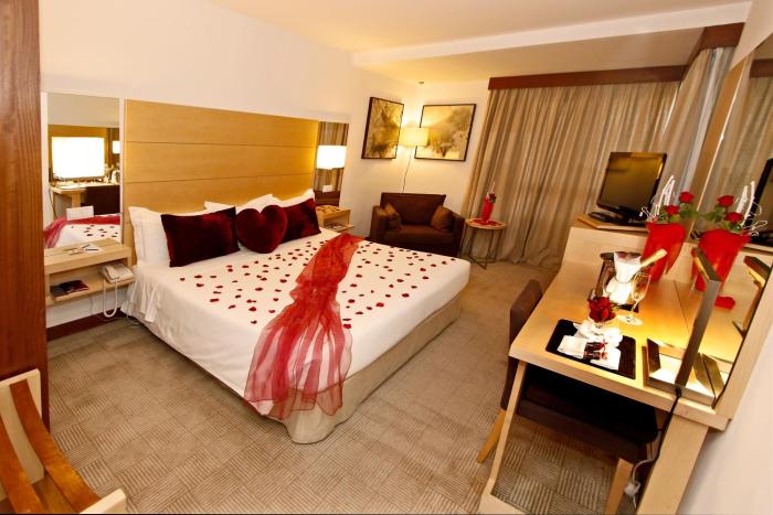 The hotel has 5 suites and 123 double rooms, which are located on 16 stories and are reachable by 3 elevators. The friendly staff at the reception desk in the lobby are happy to answer any questions. A safe, a TV room, a babysitting service, room service, a laundry service, 5 conference rooms and a business center are available. Wireless internet access allows guests to stay connected while on vacation. Wheelchair-accessible facilities are available. Guests arriving by car can park their vehicles in the garage or in the parking lot.