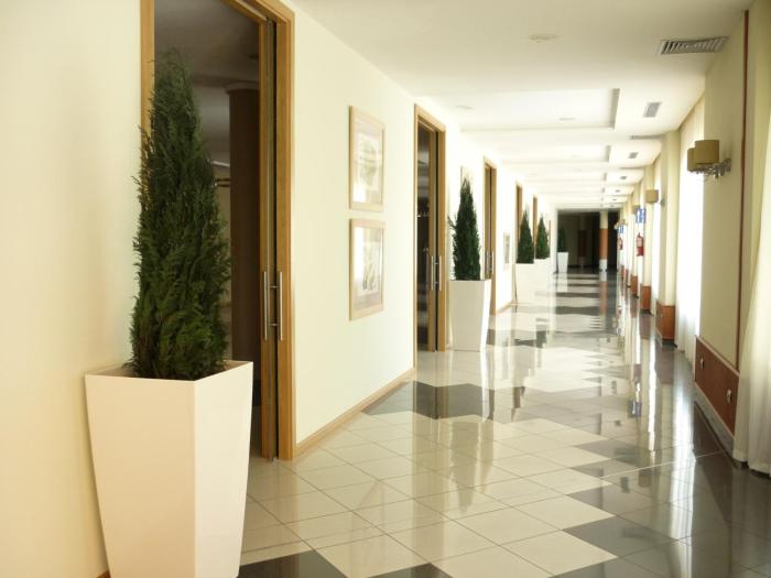 Guests have a choice of 2 junior suites and 149 double rooms located in two 4-story buildings with elevators. The 24-hour reception desk makes arrival and departure effortless. Amenities include a safe and a currency exchange service. Wireless internet access allows guests to stay connected while on vacation. The grounds of the resort feature a playground and a lovely garden. Additional amenities include a TV room and a playroom. Guests arriving by car can park their vehicles in the garage (for a fee) or in the parking lot. Further services and facilities include medical assistance, room service, a laundry service, a hairdresser and a coin-operated laundry.