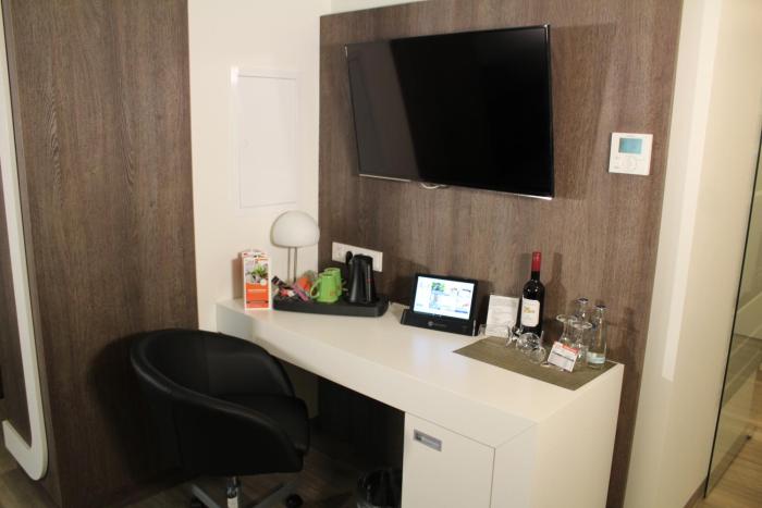 Friendly check in. No room fridge, no AC so lucky it’s not summer. OK Mattress, but the pillow is made of air!? Parking must be made at their garage at 12 € per day or a town garage a bit far away...
