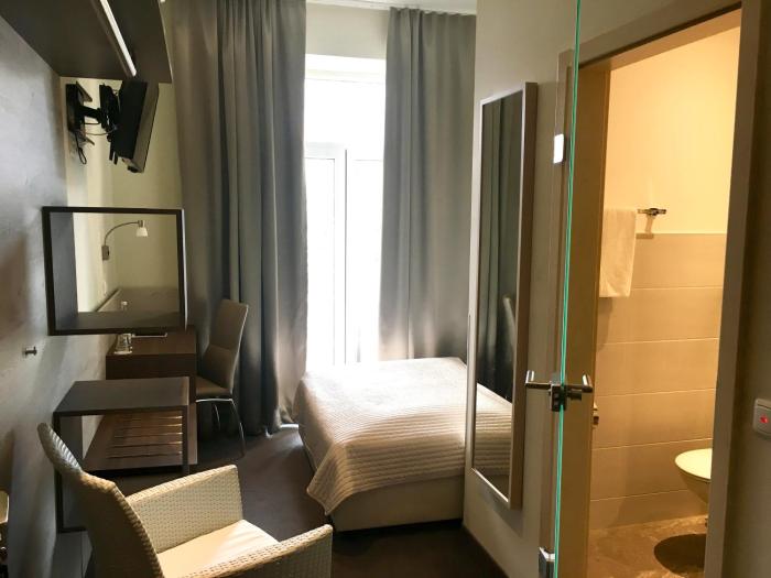 2 minute walk to the city center, 2 minute walk to city parking with reasonable rates. Friendly staff, excellent breakfast at extra charge. I had the small room, not so comfortable bed, good tv and...