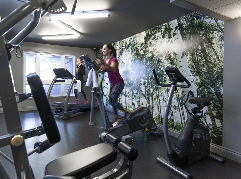 After an eventful day, guests can work out and recharge in the gym.