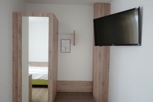 Freistehendes Haus, mit dem Flair der 70er, aber echt nett. Super netter Empfang. Sehr schön und modern gemachte Zimmer. 3 Minuten zu Fuß von der Innenstadt. Hunde sind willkommen. Alles bestens, so...