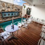 located across from a beautiful main plaza and walking distance from watewrway, shops, mercado and good restaurants, however i found the room musty, dingy and hot but tolerable after dark...