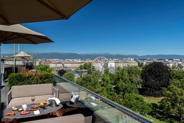 With a picturesque countryside featuring beautiful river and lakeside scenery on the doorstep, this urban hotel is located in the heart of Geneva. It is about 5 miles to Genf (GVA) Airport. Annecy (NCY) and Chambery (CMF) are about 25 miles and 55 miles away, respectively.