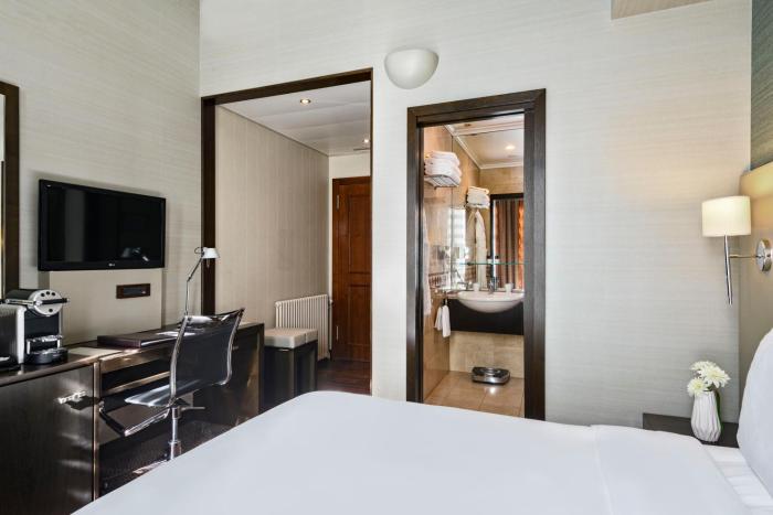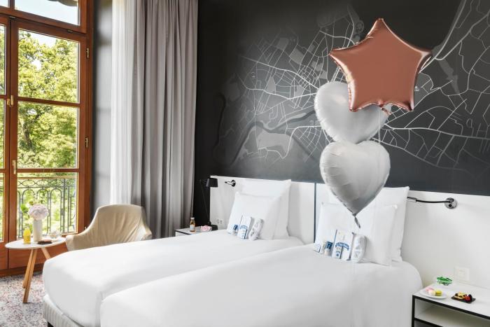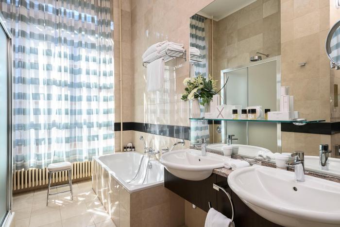 The hotel was built in 1854. The hotel has 7 junior suites, 9 suites, 21 single rooms and 90 double rooms, which are located on 5 stories and are reachable by elevator. The reception desk is open around the clock. A safe, medical assistance, room service, a laundry service, a conference room and a business center are available. Wireless internet access allows guests to stay connected while on vacation. Guests arriving by car can park their vehicles in the parking lot for a fee.