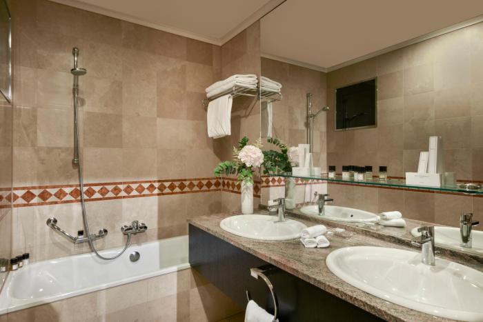 Air conditioning and central heating ensure that rooms maintain comfortable temperatures. Rooms include a double bed. A safe and a minibar are also available. Additional features include a mini fridge and a tea/coffee station. Equipped with a direct dial telephone, a television with satellite/cable channels, a radio, a stereo system and WiFi, the rooms provide many ways for guests to stay connected and entertained. Bathrooms are equipped with a shower and a hairdryer. The hotel has 108 non-smoking rooms.