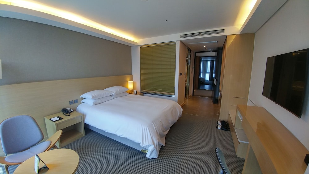 Nice hotel located not so far from airport. Walking distance to black pork street, Dongmun market and shopping street. Surrounding can easily find convenient store. We booked an ocean view room...