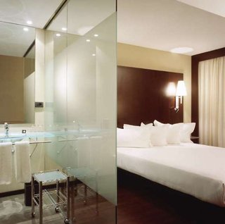 Rooms are equipped with air conditioning and individually adjustable heating. Rooms have a double bed or a king-size bed. There is also a minibar and, for a fee, a safe. An ironing set is provided for guests' convenience. A direct dial telephone, a television with satellite/cable channels and WiFi are provided as well. Bathrooms are equipped with a shower and a bathtub, as well as a hairdryer. For extra comfort in the bathrooms, guests are offered cosmetic products. Guests can also reserve wheelchair-friendly rooms with wheelchair-accessible bathrooms. The hotel has non-smoking rooms and smoking rooms.