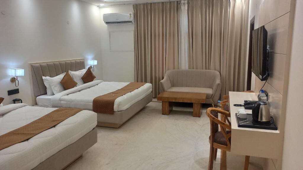 Shree Radha Heritage Offers Accommodation With A Terrace And Free Wifithroughout The Property As Well As Free Private Parking For Guests Who Drive. This 3-Star Hotel Has Air-Conditioned Rooms With A Private Bathroom. The Accommodation Provides A 24-Hour Front Desk, Luggage Storage Space And Currency Exchange For Guests. The Units In The Hotel Are Equipped With A Flat-Screen TV. At Shree Radha Heritage All Rooms Come With Bed Linen And Towels.