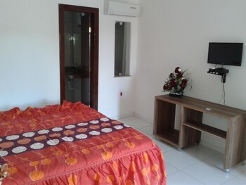Chegamos a noite e formos muito bem atendidos pelo senhor. O quarto maravilhosa tudo limpo arrumado a vista bonita, o café da manhã tinha pouco variedade mais estava tudo gostos, volto lá sem dúvidas.